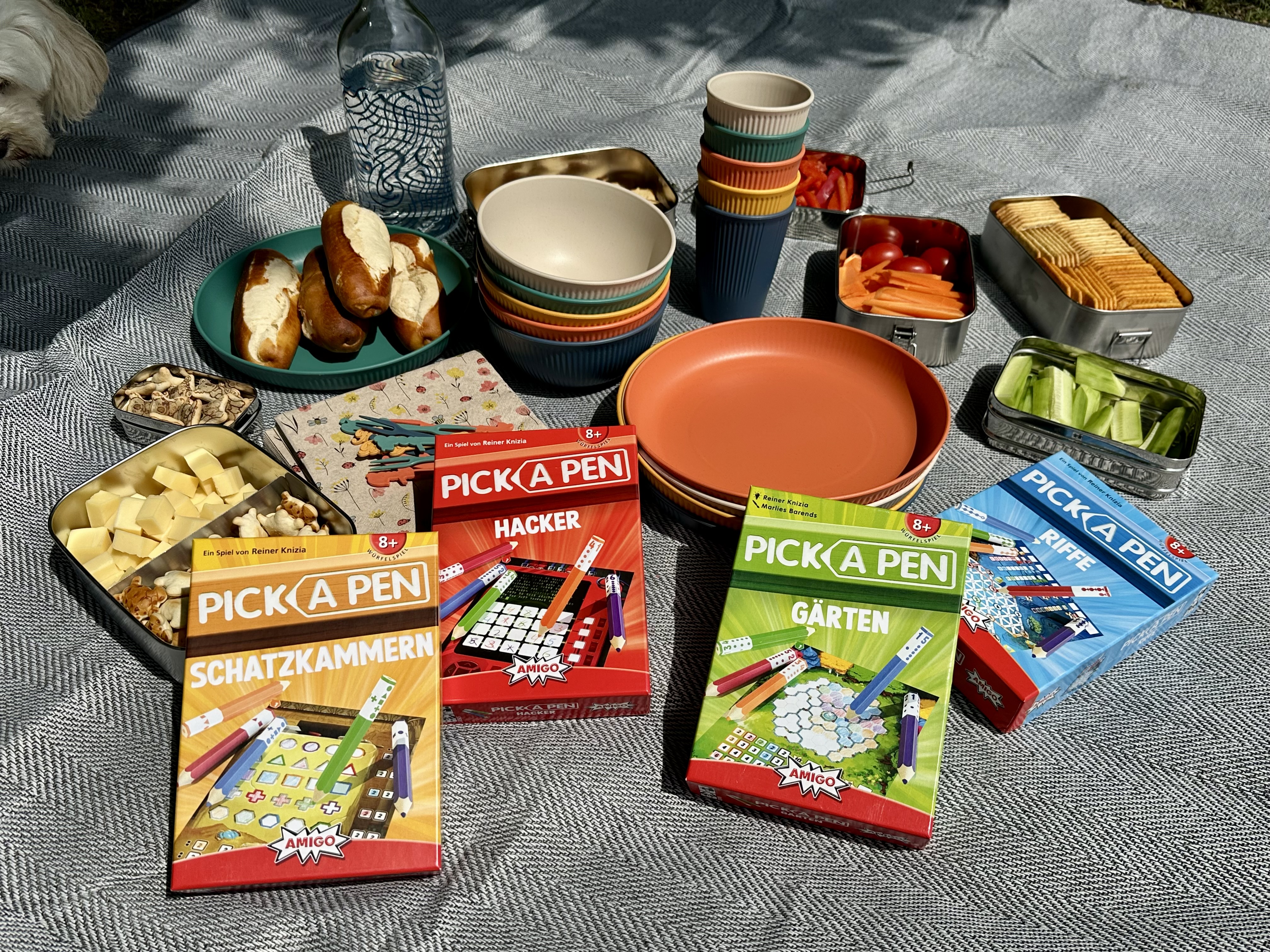 Was gibt es Schöneres, als ein Picknick mit der ganzen Familie und Spiel und Spaß an einem sonnigen Tag? Dafür sind die Pick a Pen Spiele von AMIGO einfach perfekt. Kompakt, clever und bunt, sie passen nicht nur in jeden Picknickkorb, sondern sorgen auch im Grünen für jede Menge gute Laune